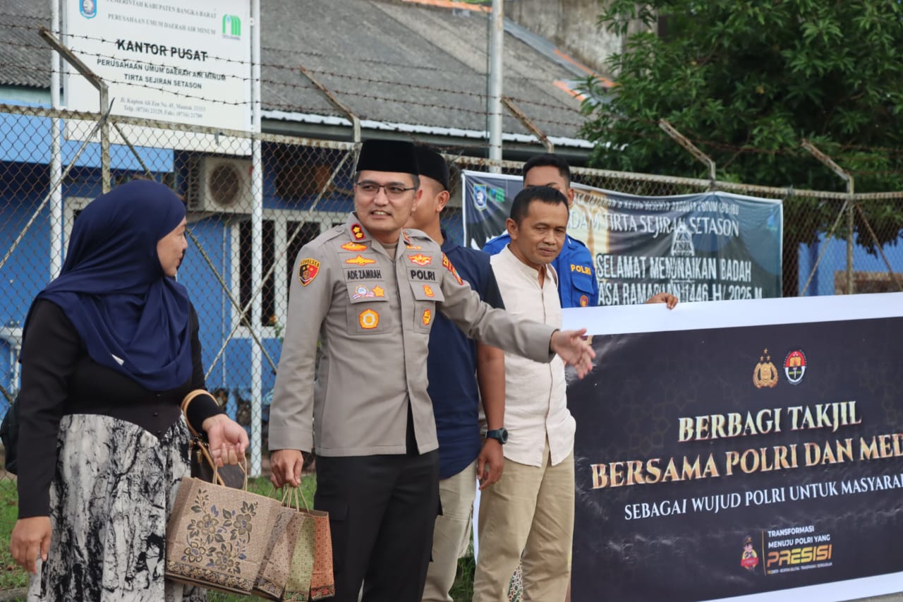 BANGKA BARAT – Polres Bangka Barat menggandeng wartawan berbagi takjil gratis kepada masyarakat dan buka puasa bersama, Kamis (13/3/2025).