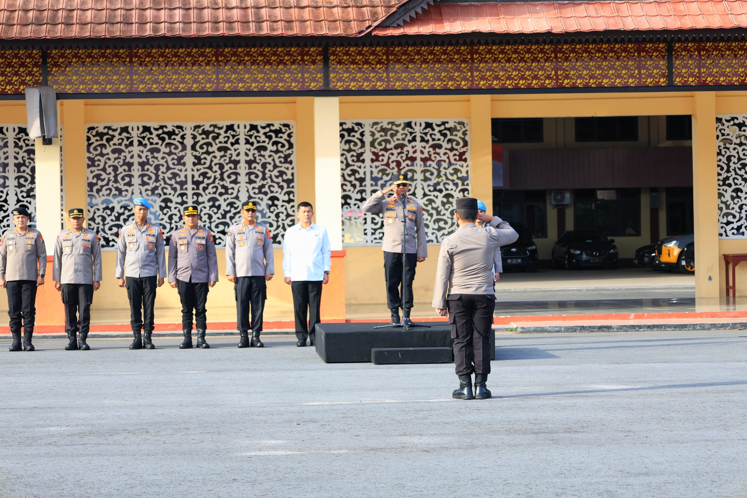PANGKALPINANG – Brigjen Pol Murry Mirranda memimpin apel perdananya usai resmi menjadi Wakapolda Bangka Belitung. Dalam apel tersebut, ia menekankan pentingnya kedisiplinan serta kekompakan seluruh anggota.
