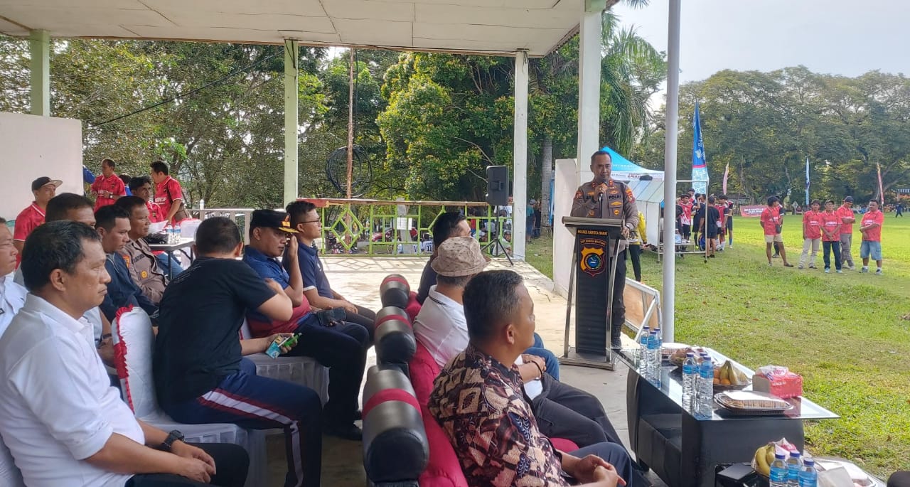 Pembukaan Turnamen Sepakbola Bhayangkara Cup 2025 di Lapangan Gelora Mentok, Jumat (9/5).