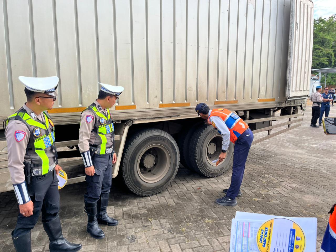Menurut Dwi, pemeriksaan yang dilakukan mulai dari pengecekan surat menyurat, kelengkapan kendaraan sekaligus kondisi kendaraan yang digunakan oleh badan usaha untuk mengangkut barang.