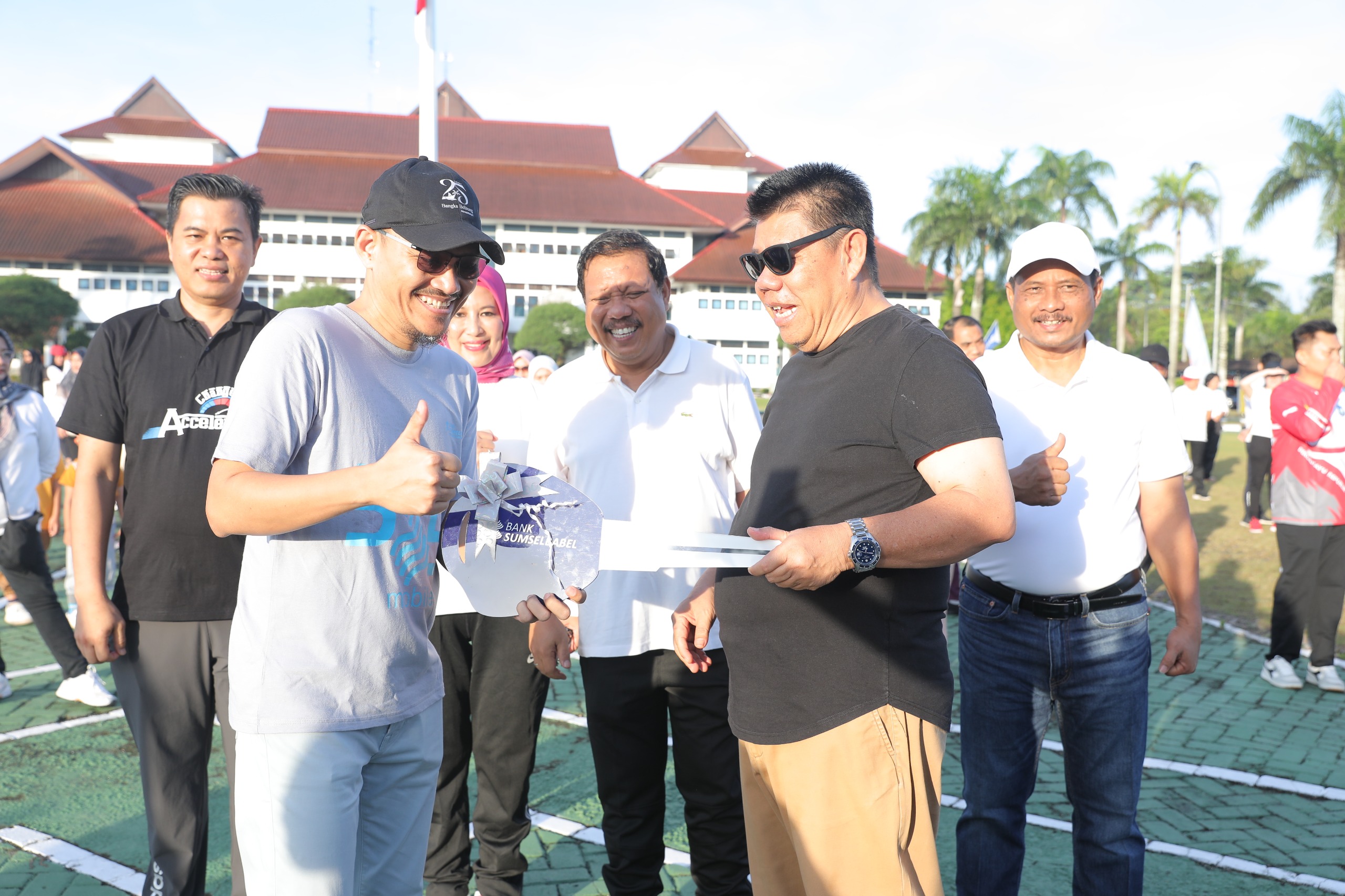 Acara kemudian dilanjutkan dengan penyerahan secara simbolis kunci hadiah utama dari Gubernur kepada Pimpinan Sumsel Babel Cabang Pangkalpinang, Irwan Kurniawan.
