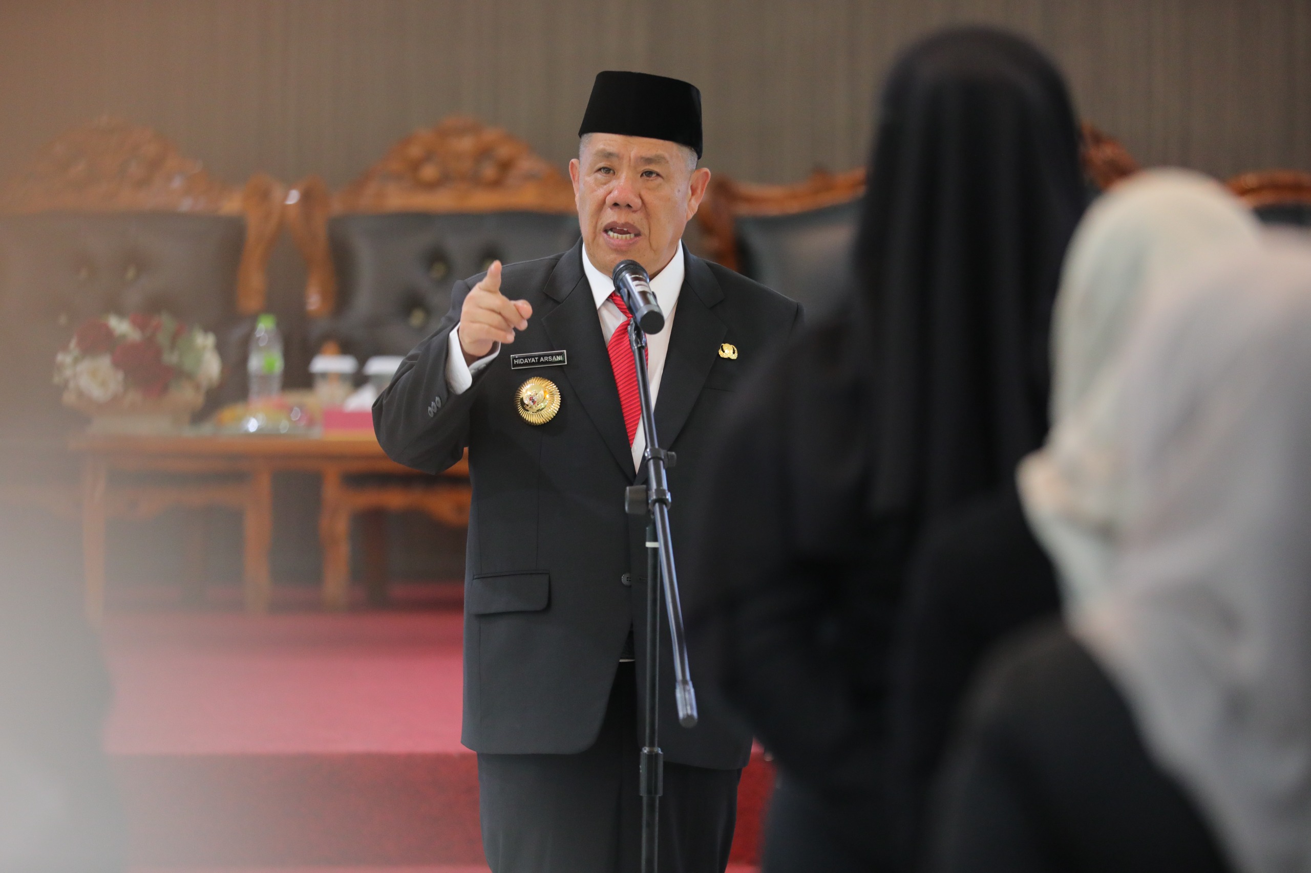 PANGKALPINANG – Gubernur Kepulauan Bangka Belitung, Hidayat Arsani, melantik 122 orang pejabat Eselon III dan pejabat Eselon IV dari 128 orang yang disetujui Mendagri.