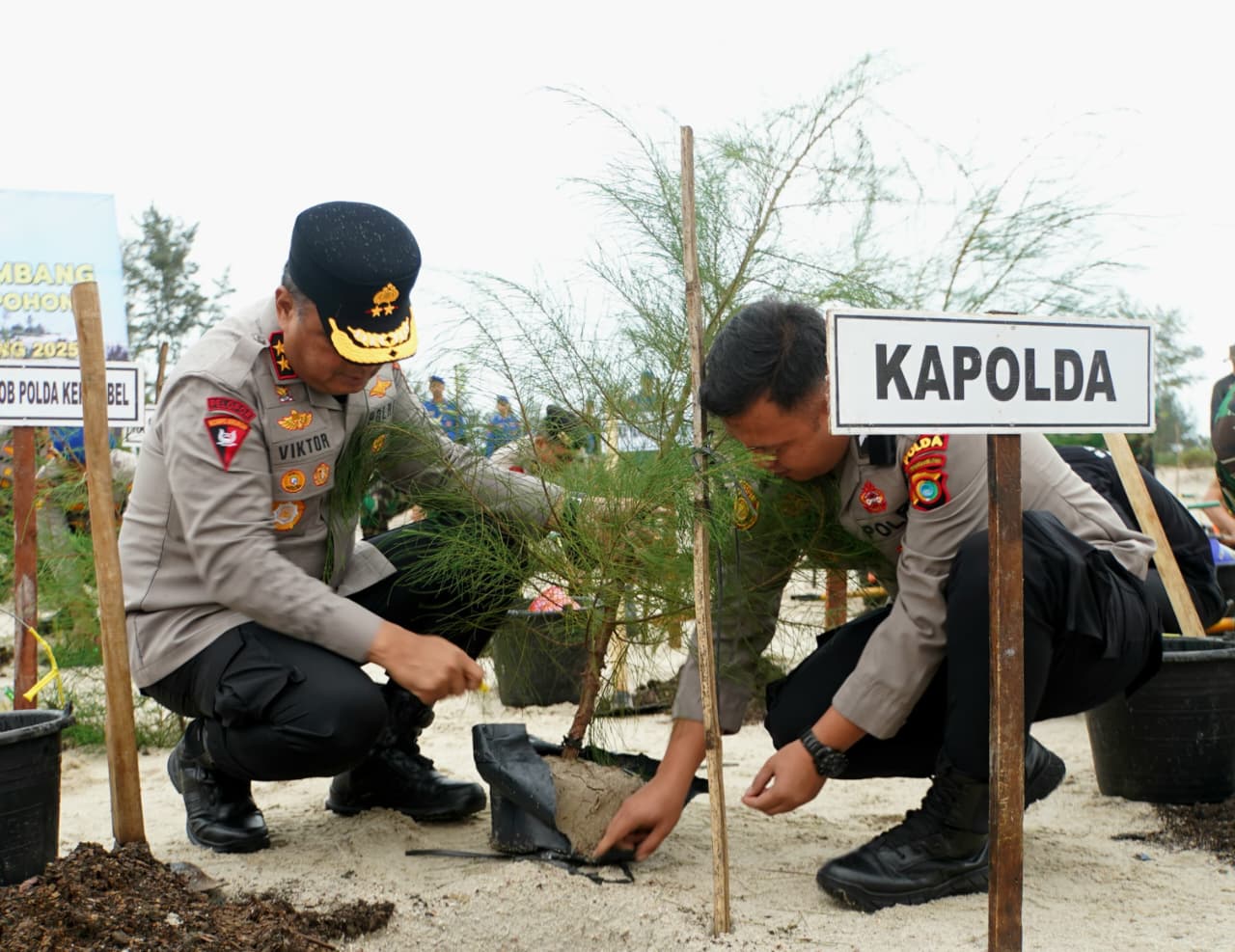 Irjen Pol Viktor mengatakan penanaman pohon ini dilaksanakan untuk rehabilitasi lahan eks tambang dalam rangka Operasi Tertib Tambang Menumbing 2025.