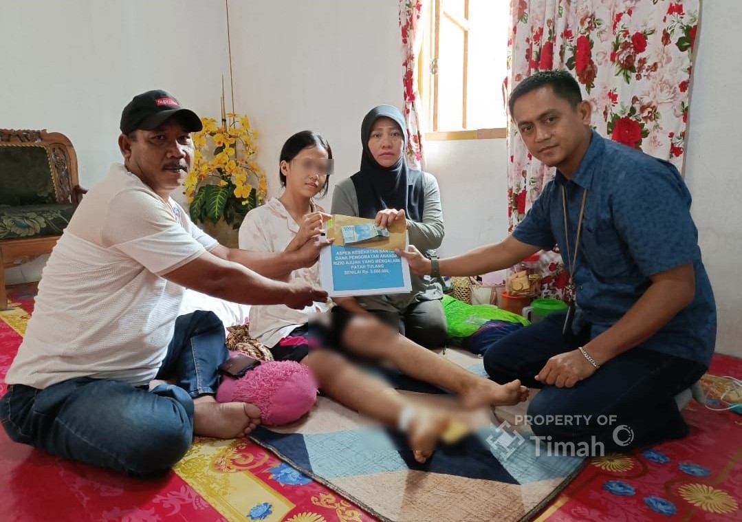 Rizki Ajijah warga Desa Gemuruh, Kecamatan Kundur Barat, Kabupaten Karimun ini mengalami patah tulang kaki akibat kecelakaan yang menimpanya. Sudah satu bulan lebih pelajar kelas 3 SMP ini hanya bisa terbaring di rumahnya.