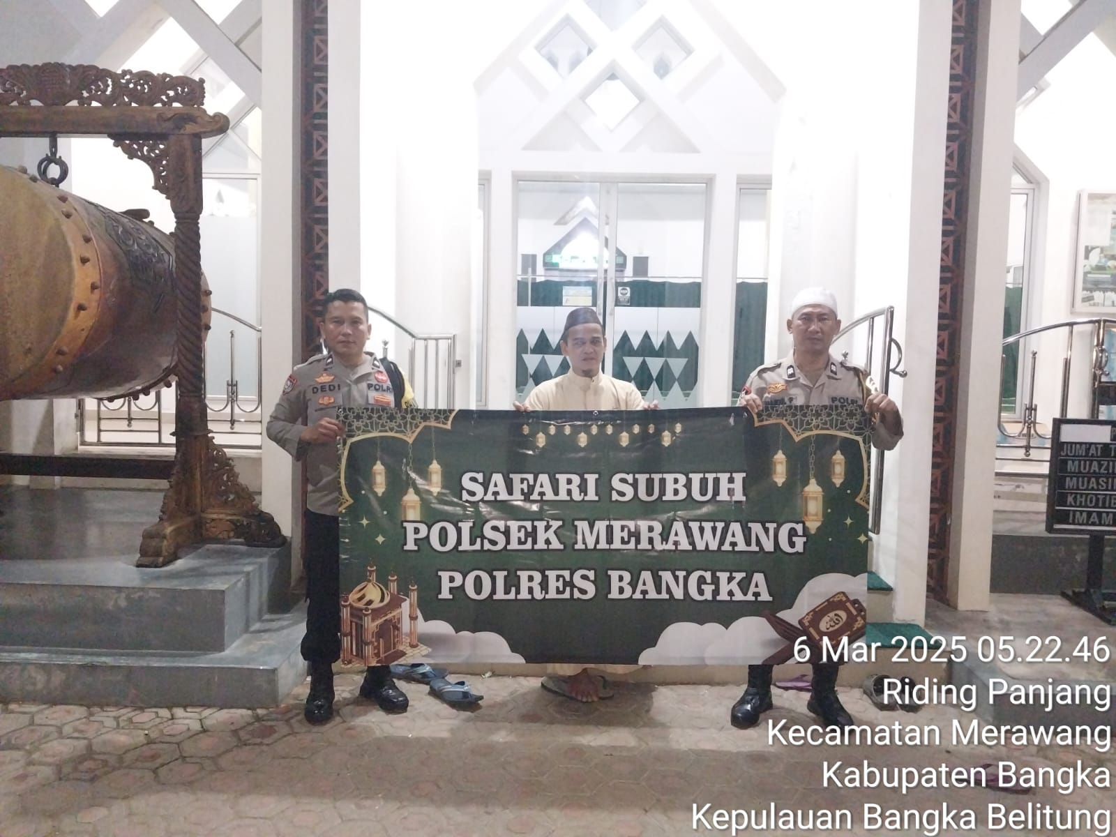 BANGKA – Dalam rangka mempererat hubungan dengan masyarakat sekaligus menjaga keamanan lingkungan, Polsek Merawang menggelar Safari Subuh di Masjid Baiturrahman, Desa Batu Rusa, Kecamatan Merawang, Jumat (07/03).