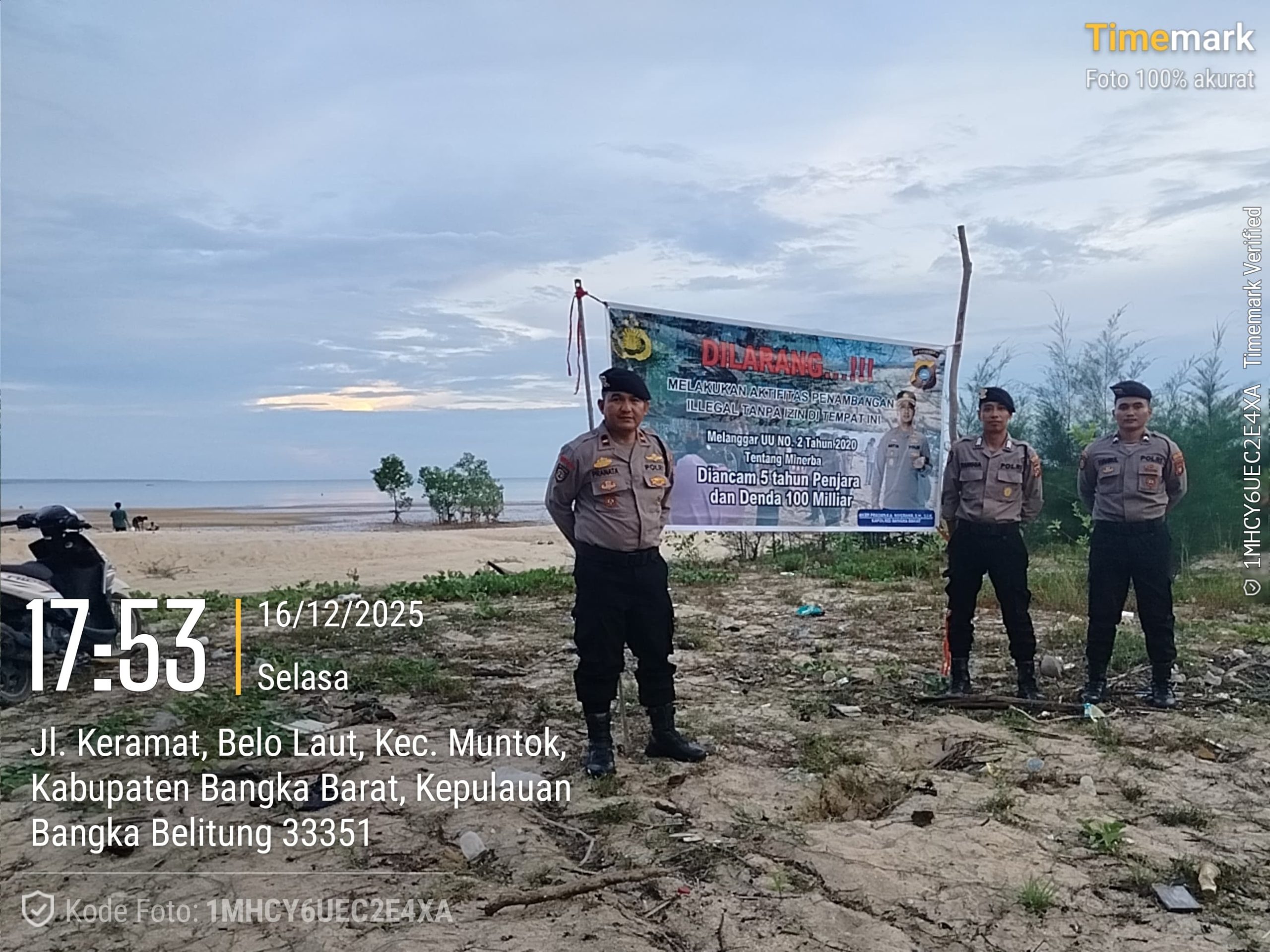 BANGKA BARAT – Dalam upaya mencegah kerusakan lingkungan serta menekan aktivitas penambangan ilegal, Satgas Preventif Polres Bangka Barat melaksanakan pemasangan spanduk imbauan dan larangan di sejumlah titik rawan tambang ilegal, Selasa (16/12/2025).