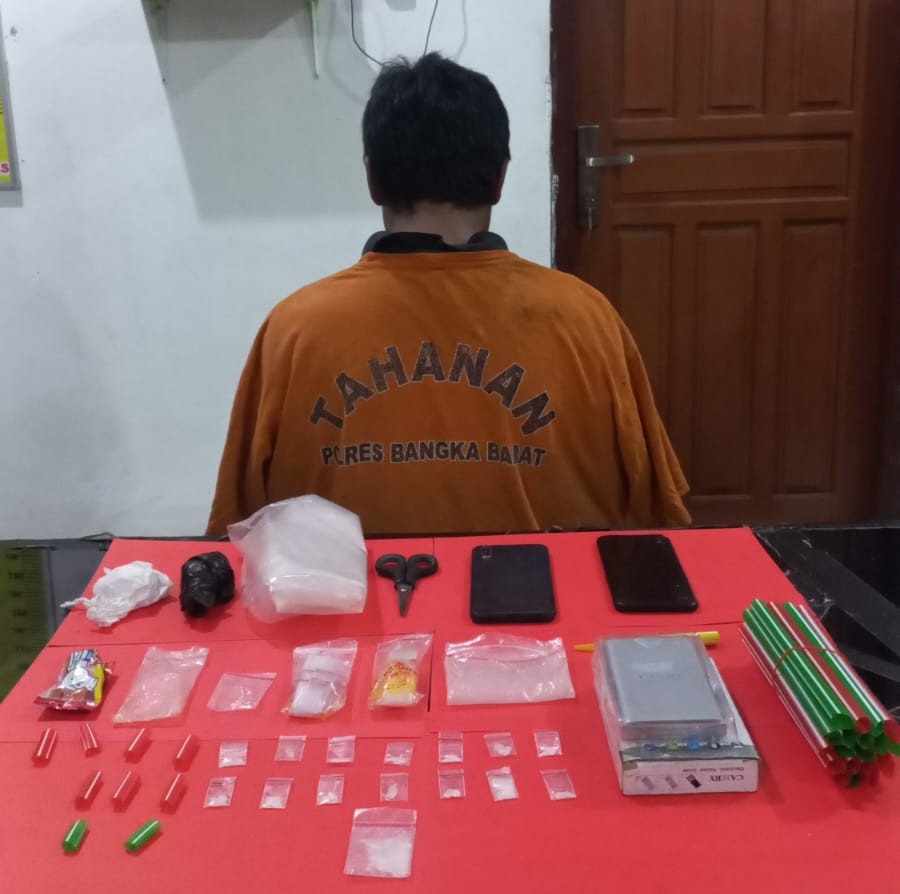 Sat Resnarkoba Polres Bangka Barat mengamankan seorang pria berinisial AS (40) di kawasan seputaran Pemakaman Kristen, Kampung Menjelang Baru, Kecamatan Mentok.