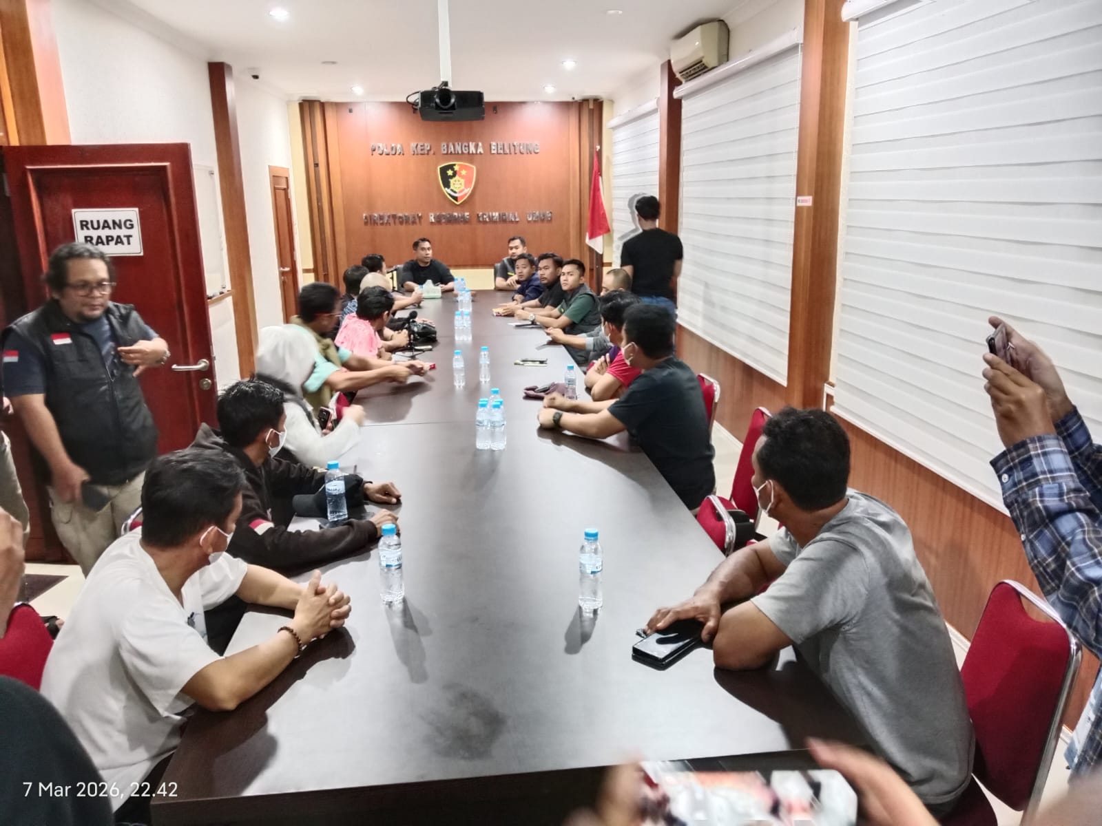 Pihak pelapor dan terlapor dipertemukan di Ruang restorative Justice Ditreskrimum Polda Babel, Sabtu malam (7/3).