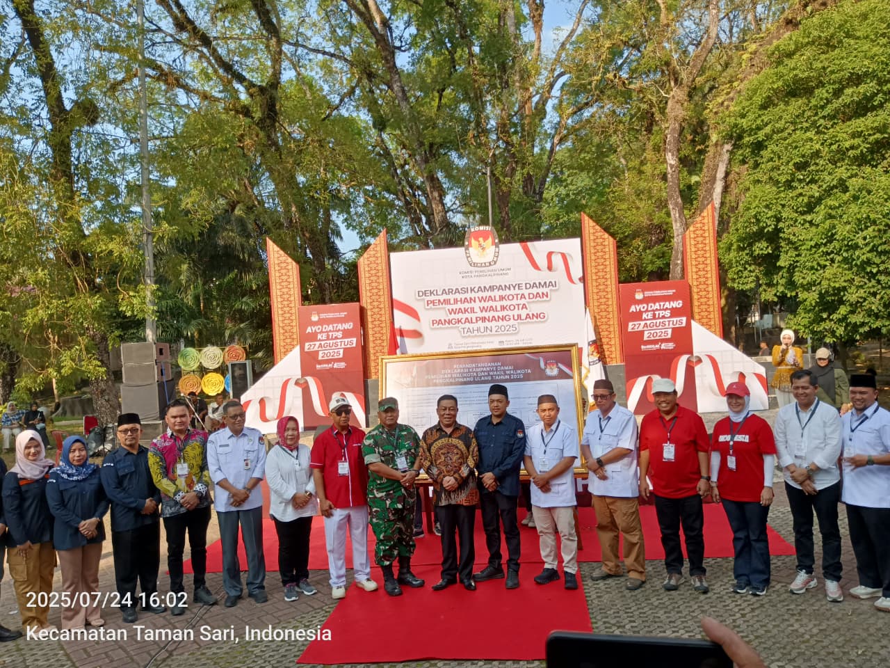 PANGKALPINANG – Penjabat Wali Kota Pangkalpinang, Muhammad Unu Ibnudin, menghadiri acara Deklarasi Kampanye Damai Pemilihan Ulang Wali Kota dan Wakil Wali Kota Pangkalpinang Tahun 2025, Kamis (24/07/2025).