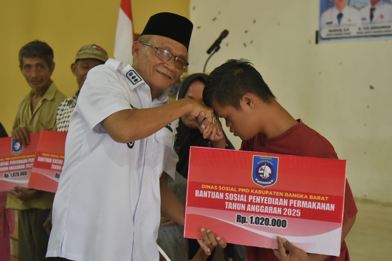 BANGKA BARAT – Dinas Sosial, Pemberdayaan Masyarakat dan Desa Kabupaten Bangka Barat melaksanakan kegiatan penyerahan bantuan sosial permakanan bagi keluarga penyandang disabilitas terlantar, anak terlantar dan lanjut usia terlantar di Gedung Serbaguna Kecamatan Kelapa, Rabu (9/7/2025) pagi.